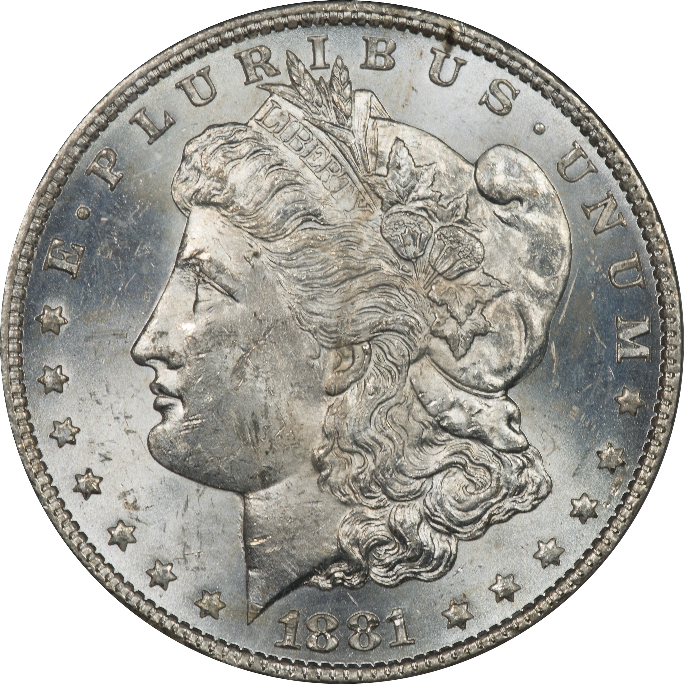 Comments: This coin retains a lot of reflectivity in the fields, but not enough for a PL designation. But it does have some nice cartwheels. Unfortunately it has a number of significant marks on the face. The fields are cleaner and speak to a higher grade when considered alone.