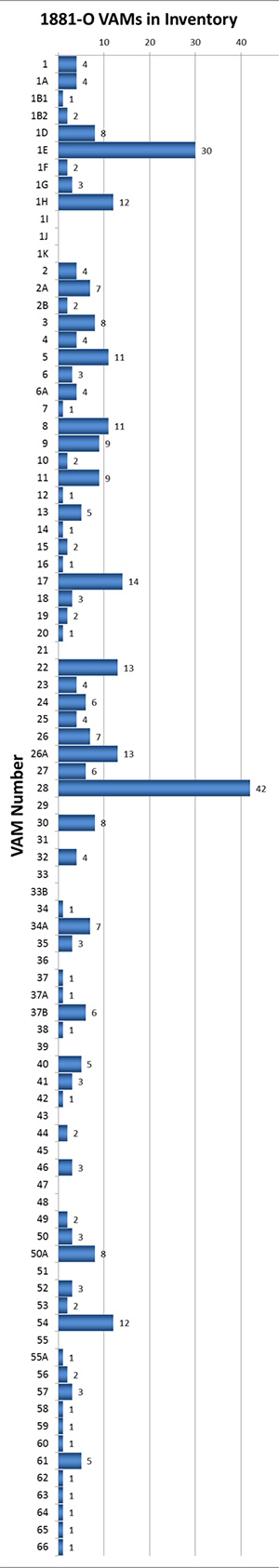 Right now we are focused on keeping our 1% of grades MS62, MS63, and MS64 where most PCGS grading occurs for the 1881-O. At the same time we are moving up the ladder into MS65 where we need 7 coins for the 1% goal. All of our MS65 coins are not on the web site but we are up to 4. Our progress is slowed by price, but also VAM. We are trying to spread the varieties around in these upper grades and often they repeat when available or the seller is so fixed on an unreasonable price that acquisition is not smart. We have our eye on a MS65+ so hopefully this will inch us toward a complete set of grading coins.