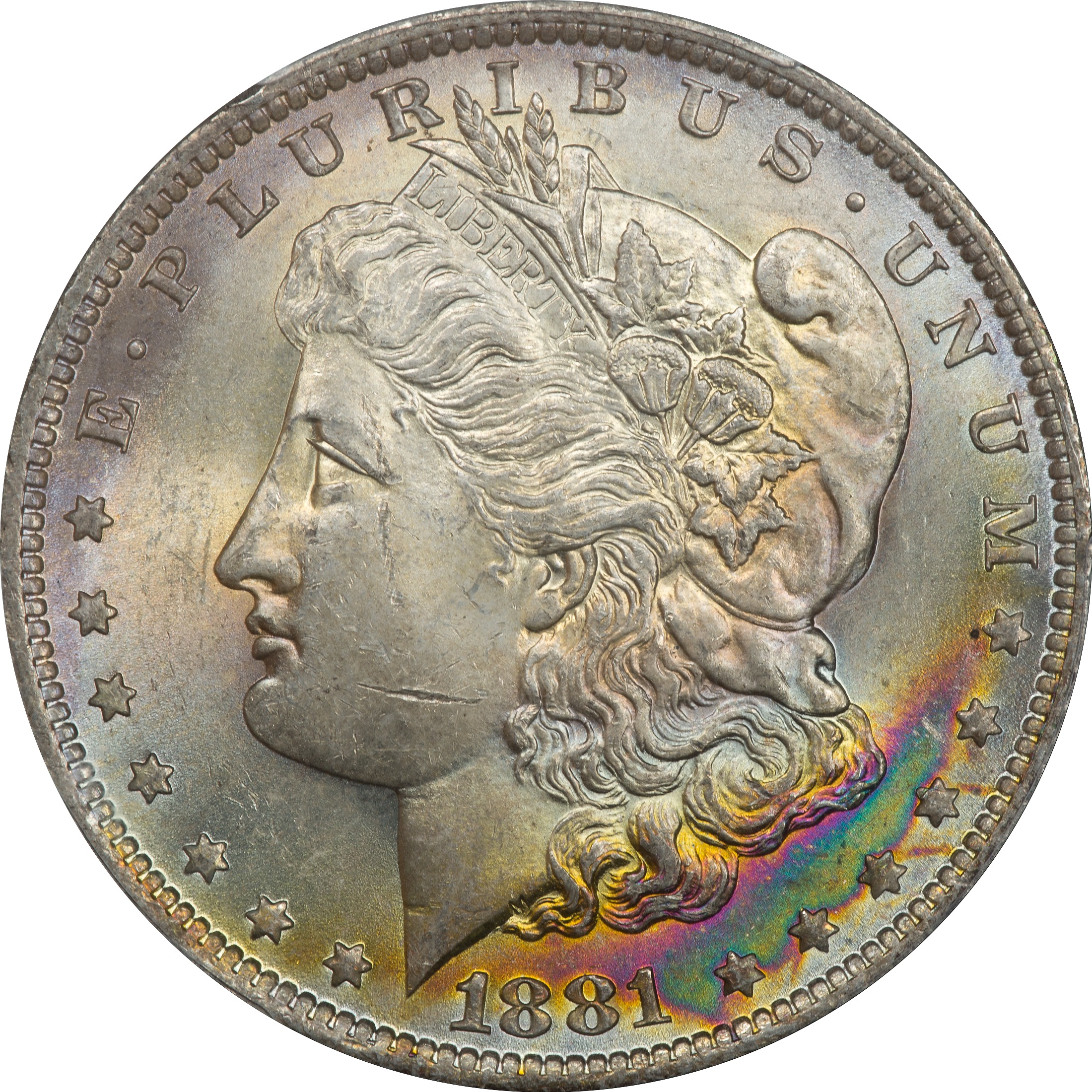 This coin is a part of our toned coin section and many more details about this and other coins are contained there. To learn more about toned coins you can select "Toned Coins" near the top of the menu on the left.