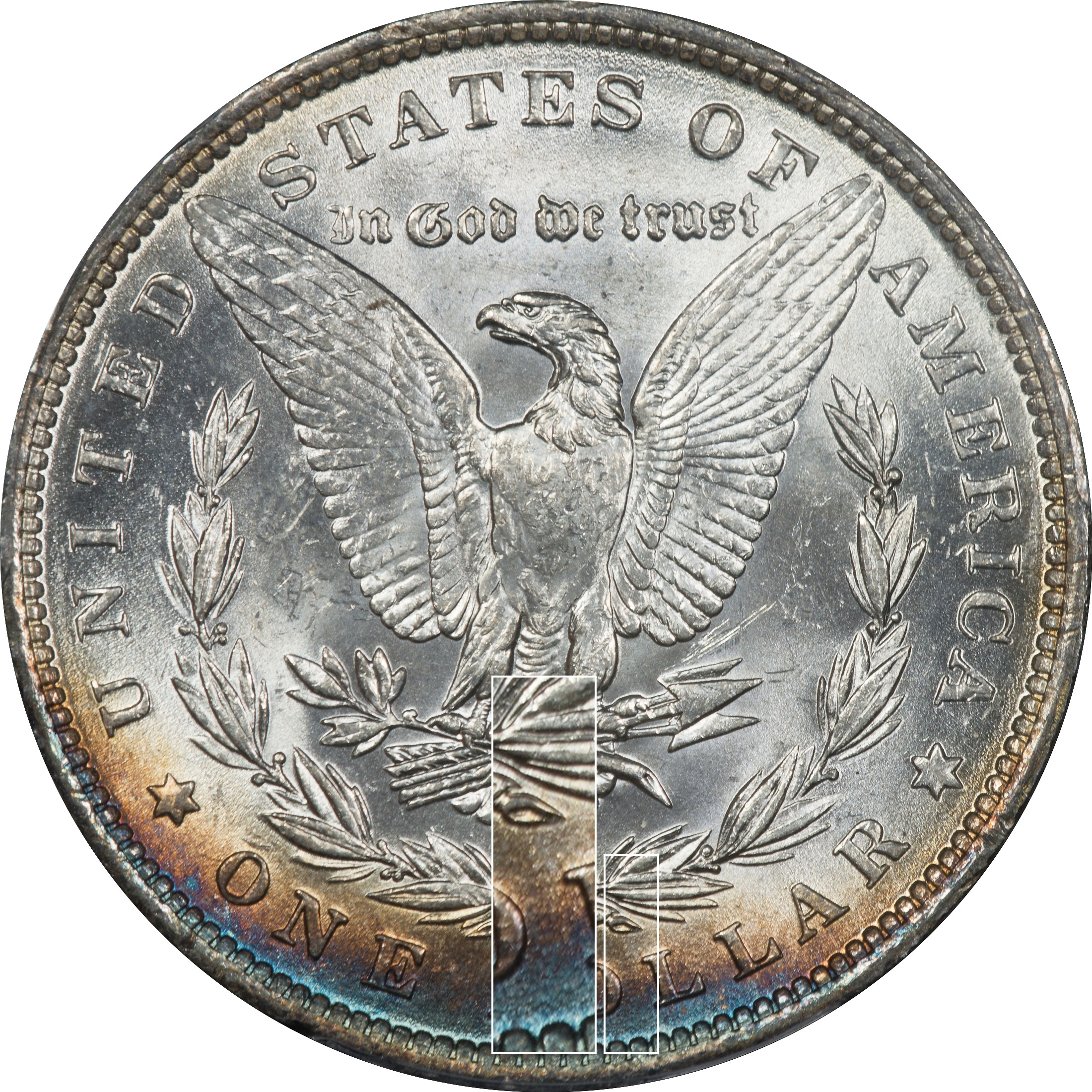 The reverse is a little better, but perhaps not an MS 62. The toning is nice and we did include this coin in that section because of its overall appeal.