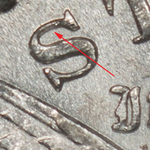 The reverse has the O mint mark set slightly to left with middle of eagle's right wing over polished.
