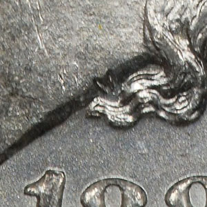 If you find this feature on a coin and look at it under magnification you will see that it is a little more pronounced and recognizable than the picture below would indicate.